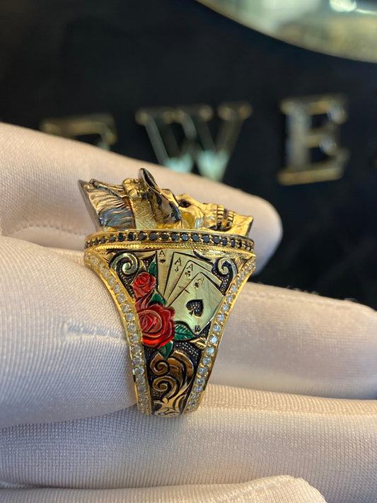 The Illusionist’s Bloom – 18k Solid Gold with white and black Diamonds